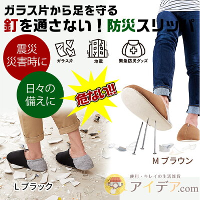 ガラス片から足を守る・釘を通さない!防災スリッパ。
